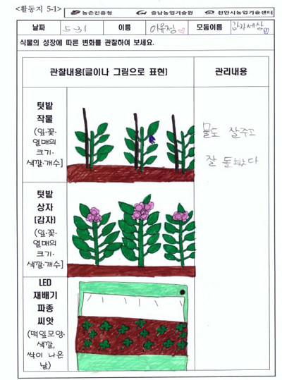 | ▲학교 텃밭 가꾸기 활동일지 일부 © 환경데일리 |