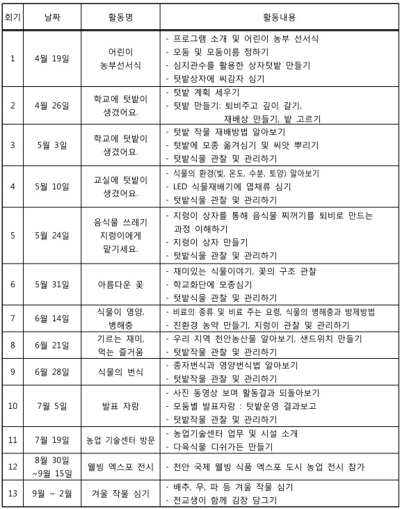 | ▲텃밭가꾸기 일정 내용 © 환경데일리 |