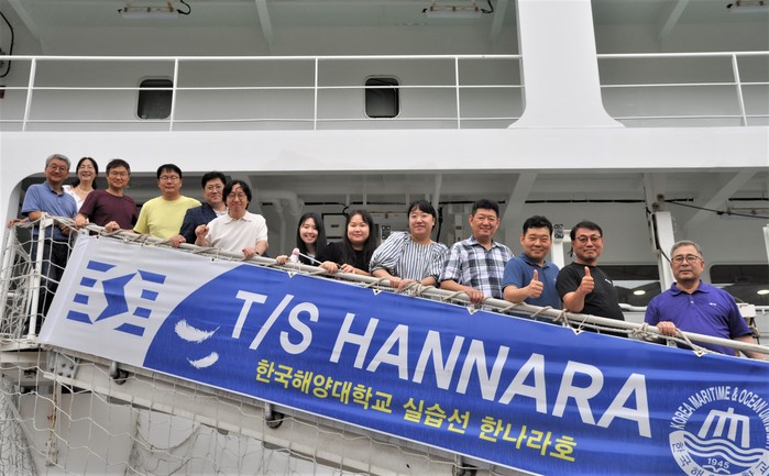 | ▲부산해양대학교 실습선인 한나라호에 올라 선박 내부 등을 둘려보고 해양생태계 보호와 자원 확보 등에 대한 폭 넓은 견문을 넓혔다. |