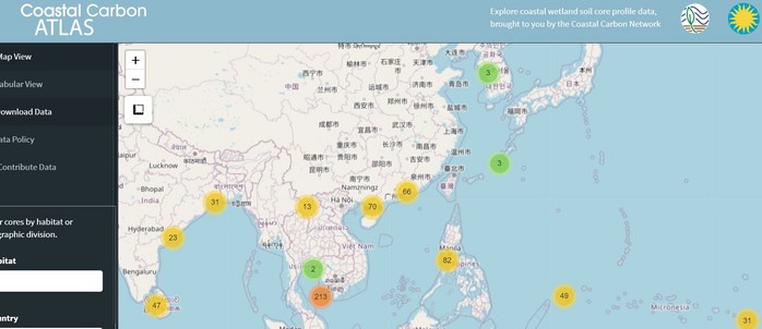 스미소니언 환경연구센터(Smithsonian Environmental Research Center) 연안탄소데이터 클리어링하우스(coastal carbon data clearinghouse)는 전세계 블루카본에 현황을 상세하게 게재하고 있다. 우리나라(Korea Tidal Flat Blue Carbon)는 3곳이 소개돼 있다.