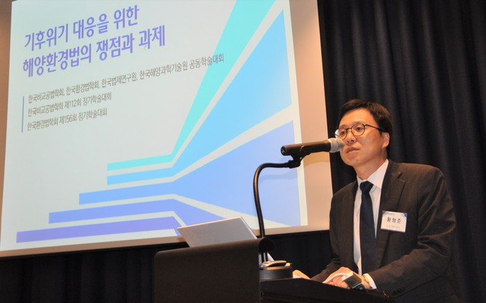 이번 학술대회는 총 3개 세션으로 5개 주제로 해양기반해법, 해양탄소흡수원 보전 확대 법개선, 헤양에너지 개발, 탄소포집이용저장(CCUS)기술 법적대응, 해양폐기물 및 해양퇴적물 관리법을 발제와 토론이 진행했다.