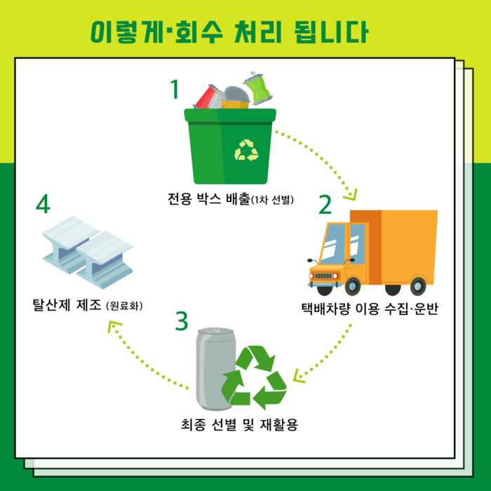 CJ대한통운은 국내 1위의 전국적인 물류망을 활용해 전국 22개 국립공원에서 배출되는 폐알루미늄캔을 효율적으로 회수·운반한다.