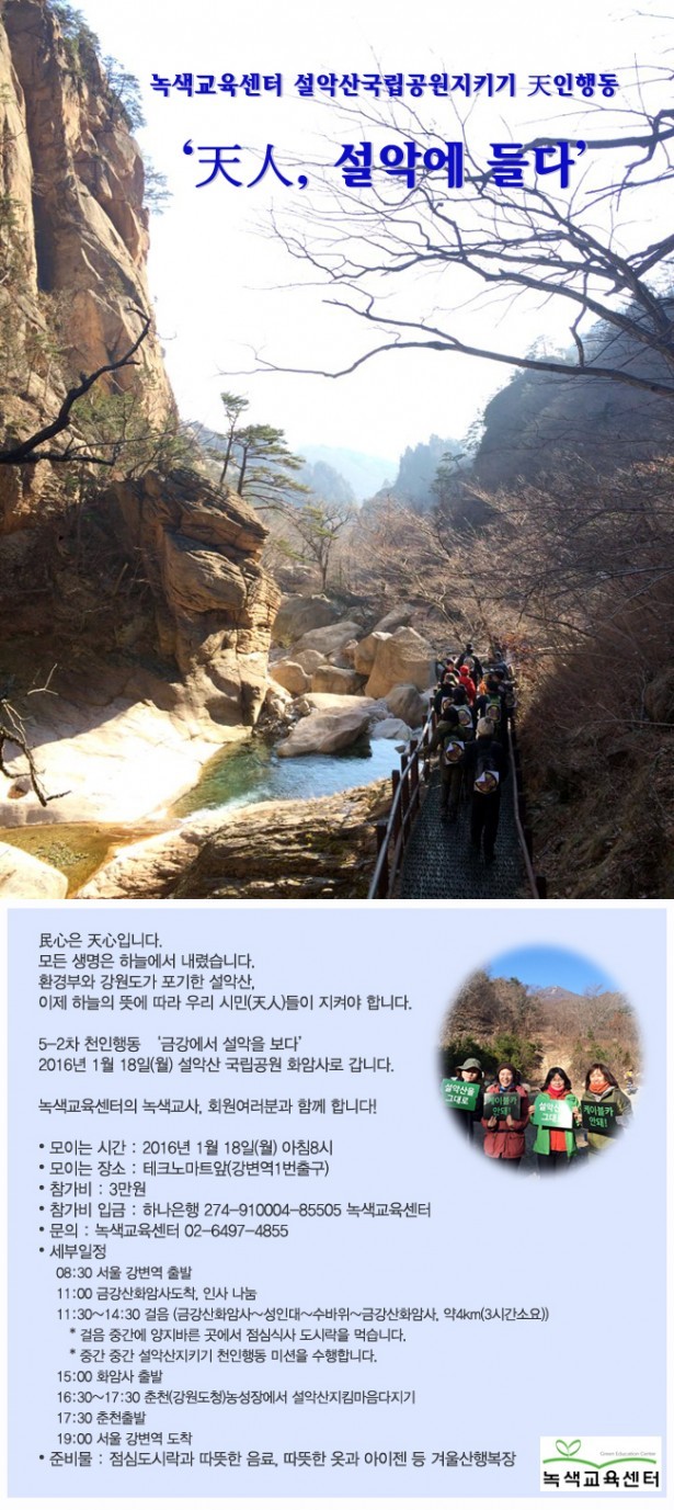 5-2차 천인행동 ‘금강에서 설악을 보다’ 2016년 1월 18일(월) 설악산 국립공원 설악산 화암사로 갑니다.