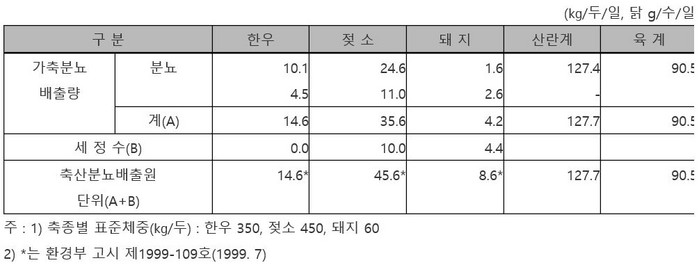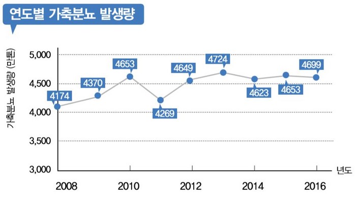 | ▲가축분뇨 배출량과 세정수 발생량 |