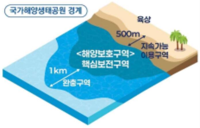 이번 국가해양생태공원은 해양보호구역인 핵심보전구역과 완충구역(해상 1km), 지속가능이용구역(육상 500m)으로 구분하고, 3단계 공간관리체계를 도입 보전과 이용이 균형을 갖춘 공간으로 관리될 예정이다.