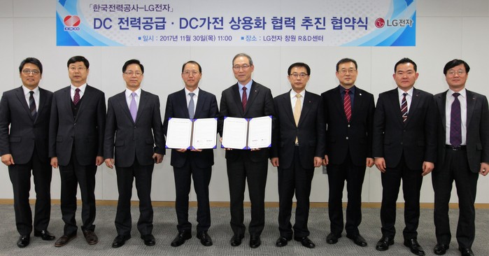이를 위해 KEPCO 한국전력과 LG전자는 11월30일 오전 11시 LG전자 창원 R&D센터에서 한전 김시호 부사장, LG전자 H&A사업본부장 송대현 사장 등이 참석한 가운데 'DC전력공급 DC가전 상용화 협력을 위한 협약"을 체결했다.
