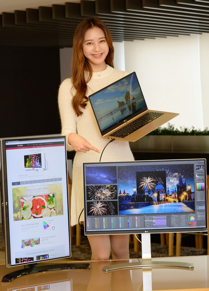 신제품(모델명: 27UD88)은 고해상도 콘텐츠를 완벽하게 보여준다. 표현할 수 있는 색상도 약 10억 개에 달해 현실감 넘치는 화면을 구현한다. 4K 해상도를 적용해 사진을 확대해도 눈가의 주름과 머리카락 한 올까지 선명하게 보여준다. 측면에서 보더라도 화면이 선명한 IPS패널을 적용했다.