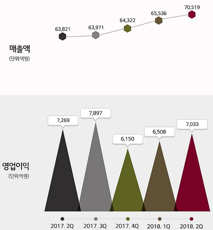 24일 밝힌 분기 매출 기준 사상 처음으로 7조원을 돌파하면서 앞으로 3, 4분기를 비롯 2019년도 승승장구 할 것으로 전망된다.