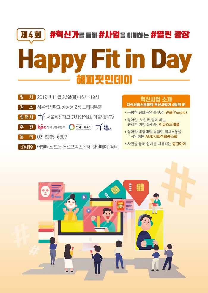 [환경데일리 김영민 기자]'제4회 해피핏인데이'가 26일(화) 16시 부터 19시 까지 서울혁신파크 상상청 느티나무홀에서 열린다.
