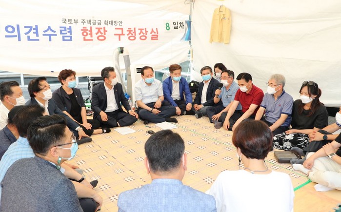 그동안 현장 구청장실에는 상암 지역 주택공급 계획에 반대하는 지역 주민 수백여 명이 다녀갔고, 일부는 구청장과 개별 면담을 통해 자신들의 의견을 전하기도 했다. 17일에 상암동 공공주택 건립에 반대하는 (가칭)주민연합회비상대책위원회 등 주민 대표 수십여명과 정청래 국회의원, 김기덕 시의원, 정진술 시의원 및 지역구의원들이 현장 구청장실을 방문, 코로나19 재확산 대책과 긴급 지역 현안업무 등 원활한 구정 운영을 위해 구청장이 단식을 중단해 주길 간곡히 건의했다.