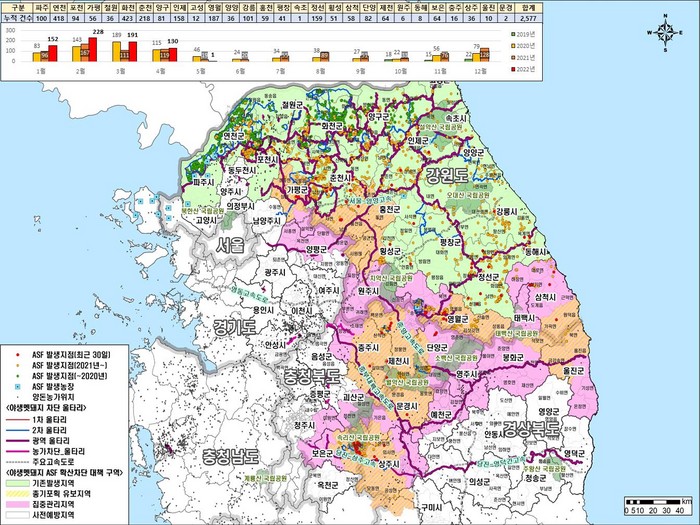 정원화 국립야생동물질병관리원 질병대응팀장은 "아프리카돼지열병의 확산을 막기 위해서는 야외 활동이 늘어나는 봄철부터 적극적으로 대응해야 한다."며, "특히 야생멧돼지 폐사체 방치가 장거리 전파의 주요 원인 중 하나이기 때문에 국민들의 적극적인 폐사체 신고가 매우 중요하다."고 말했다.
