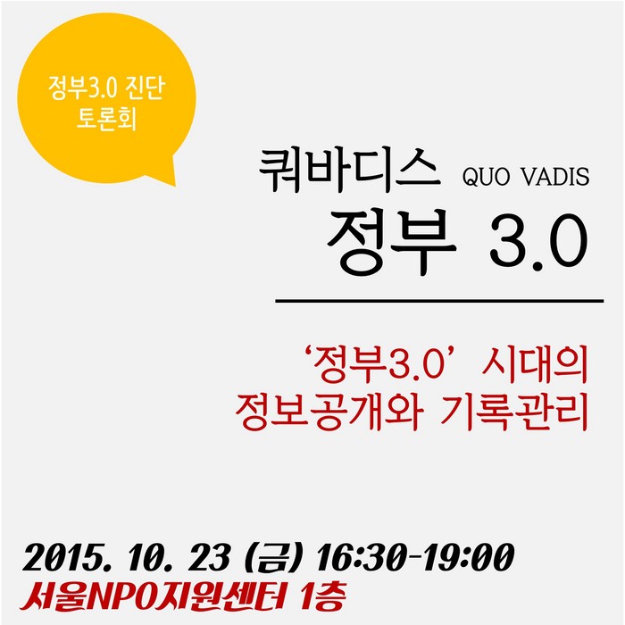 이 토론회는 투명사회를 위한 정보공개센터와 한국기록전문가협회는 박근혜정부 정부3.0에 대해 중간평가를 해 보는 자리를 준비했다.