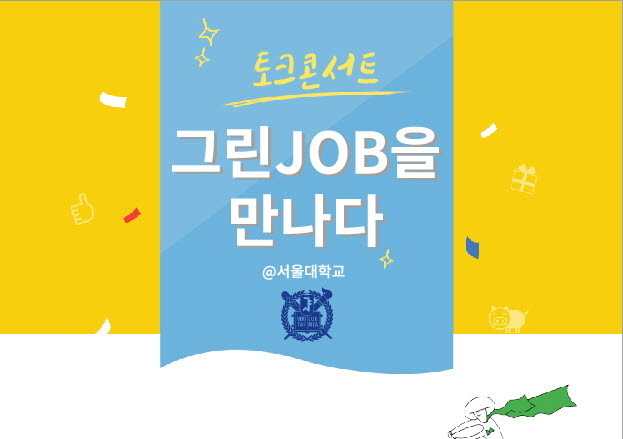 이번 '토크콘서트 그린JOB을 만나다'는 10월21일(수)~22일(목) 양일간 오후 5시부터 7시까지 서울대학교 문화관 중강당에서 청소년 등 일반인 등을 열린다.