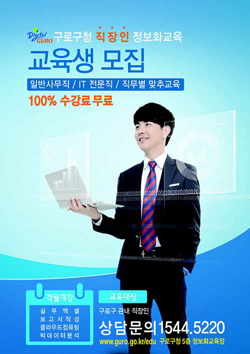 또한 구로구는 수강생들의 만족도 조사 후 빅테이터 분석, 클라우드 컴퓨팅 등 IT 전문직 과정과 동영상 편집, 파워포인트, 스토리텔링 프레젠테이션 등의 과정을 확대 편성할 예정이다.