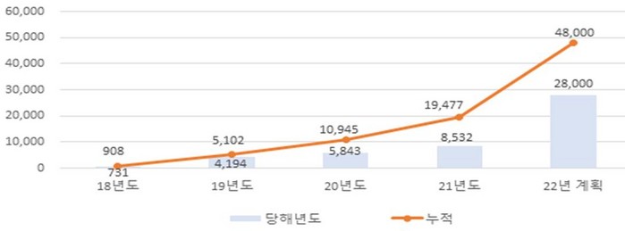 올해는 충전여건 개선, 지자체 협력사업 확대 등을 통해 2022년까지 누적 목표치(6.7만대) 대비 70% 수준인 4만8000대까지 보급이 전망된다고 밝혔다.