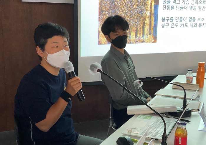 | ▲토론에 나선 김일숙 더비키스대표와 성민규 생물다양성재단 연구원이 꿀벌과 야생벌 실태를 전했다. |