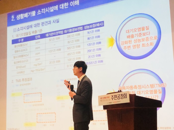 국내 소각시설은 172개소가 가동중이다. 그는 "우린 안돼, 이런 생각은 안하셔도 된다."고 말하면서 세워질 시설은 전처리과정을 걸쳐 재활용으로 재자원화할 수 있도록 하겠다고 했다. 소각시설 시스템은 최첨단 자동화시스템 및 고도화 설비로 환경오염방지를 차단한다고 밝혔다.