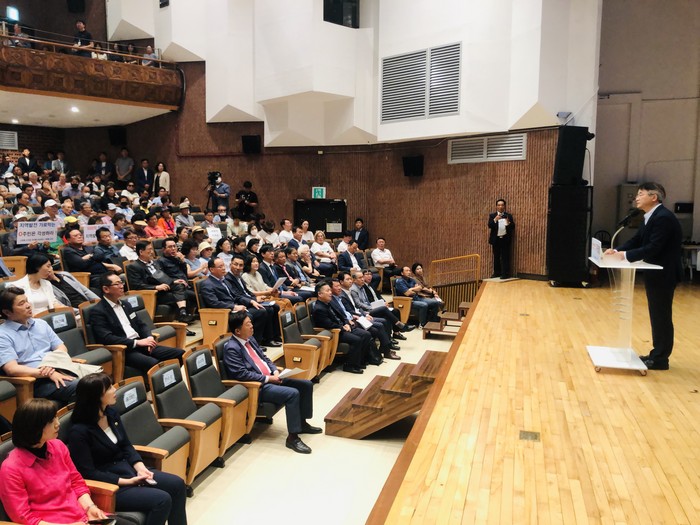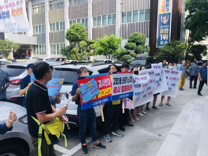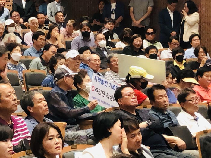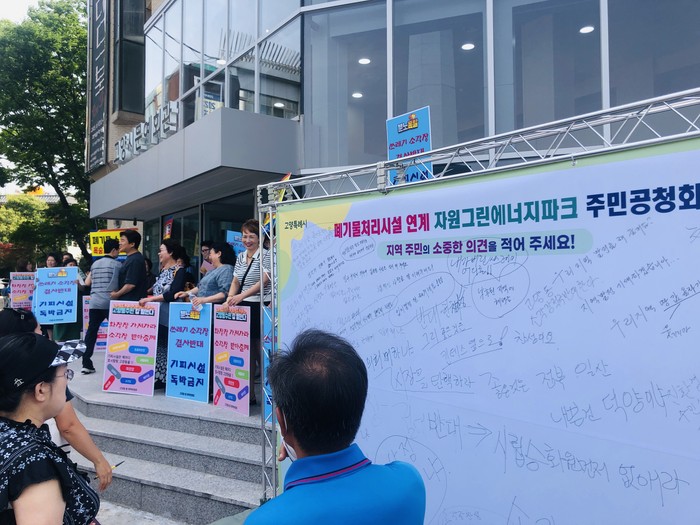 반대측 주민들은 공청회장 입구에서 피켓을 들고 반대 구호를 외쳤고, 공청회 시작하면서 시장의 발언을 중간중간 끊으면서 우리 마을은 안된다는 항의성 목소리가 새어나왔다.