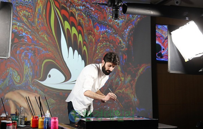 이어 진행된 에브루 기법 시연회에서는 직접 가립 아이가 등장해, 검은 물 위에 뿌려내는 형형색색의 물감을 한편의 예술 작품으로 완성시키며 관객들이 눈 앞에서 에브루 기법을 체험하는 기회를 제공했다.