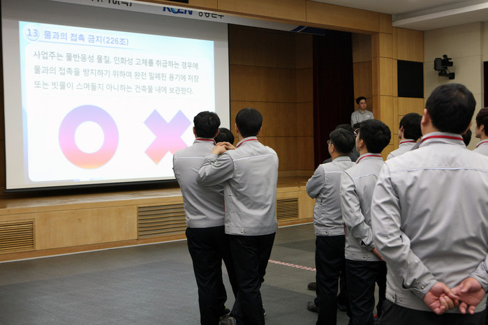 특히 보호구, 위험기구, 유해물질, 근골격계, 분진 등 안전과 보건을 총 망라한 영흥본부의 실제 현장 안전규칙에 대한 교육의 장으로 펼쳐졌다.