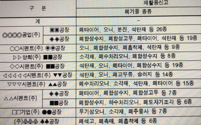 | ▲ 시멘트업계 폐기물 신고현황 |