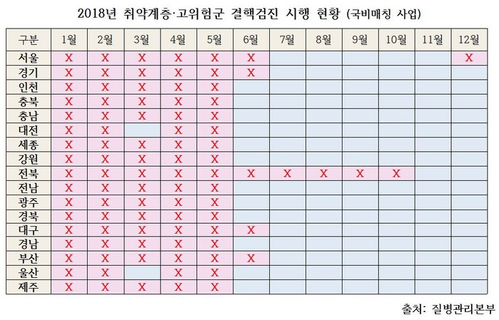 이 과정에서 1월에 국비가 교부되더라도 고위험군 대상 시설 및 기관을 정하고 이후에 검진사업자를 지정하는데 지자체의 행정관행에 따라 최소 5~6개월이 소요되는 것으로 밝혀졌다.