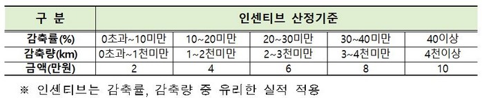 한국환경공단은 참여자를 대상으로 10월까지 주행거리 감축률(%) 및 감축거리(km) 등의 실적을 산정해 12월 중으로 탄소포인트를 지급할 계획이다.