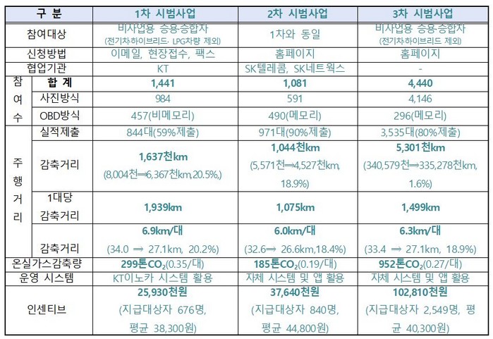 3년간 주행거리 798만km, 온실가스 1436톤 감축