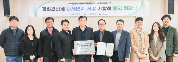 수도권매립지관리공사는 10일 본관에서 수도권대기환경청과 지역 대기질 개선을 위한 '계절관리제 미세먼지 저감 자발적 협약'을 체결했다.