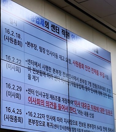 실제로 2016년 2월 센터 본부장과 팀장의 인사이동에 대해 업체들이 강하게 반발하자, 센터 인사규정을 개정해 '이사 대우급 직원에 대한 임용은 이사회의 의견을 들어서 한다'는 내용을 새로 만들기까지 환경부는 방치한 가운데 무소불위 행태를 자행했다.
