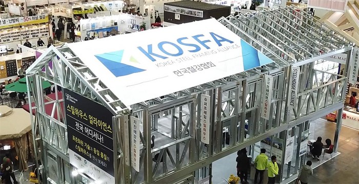 한국철강협회 강구조센터 KOSFA 회원사 '골드홈'은 킨텍스에서 건축박람회에 참가 지진에 강한 스틸하우스 공법 전원주택을 선보였어 관람객들의 주목을 받았다.