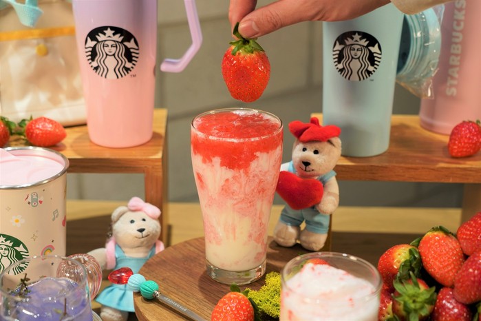 '봄 딸기 라떼'는 국내산 제철 딸기의 산뜻한 풍미가 특징으로 지난해 100만잔 이상의 판매를 기록한 바 있는 대표적인 계절 음료이다. '봄 딸기 그린 크림 프라푸치노'는 달콤쌉싸름한 말차와 상큼한 딸기의 부드러운 조화를 이루는 음료로 올해 처음 출시되었다.