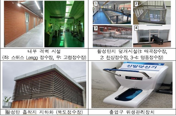 깔따구 유입방지를 위한 구조물 개선사항으로는, 건물의 이중 출입문, 방충시설(출입문, 창문, 환풍기 등 날벌레 유입이 가능한 모든 곳)을 설치해 깔따구 성충 등의 야생생물 유입을 원천 차단하고, 현재 개방형 건물 및 개방형 활성탄 지로 운영 중인 정수장의  경우 활성탄 지 상부에 개폐식 덮개 시설을 설치하되, 긴급 조치로 방충망을 틈새 없게 고정하는 것을 권고했다.