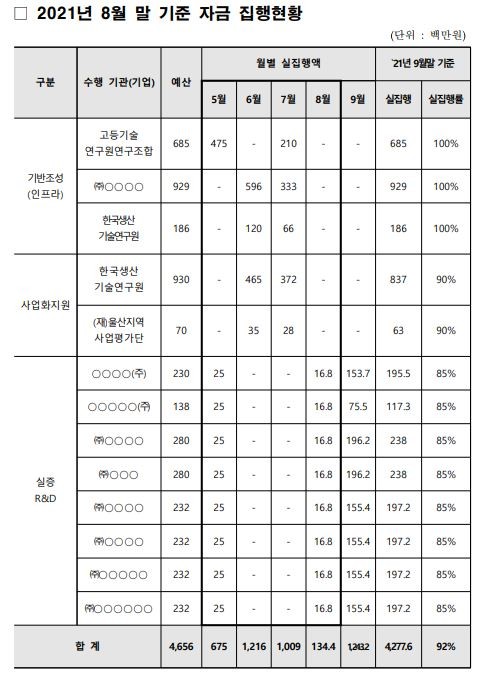 산업통상자원중소벤처기업위 소속 양이원영 국회의원(비례대표)이 중기부로부터 입수한 자료에 의하면 울산 이산화탄소 자원화 규제자유특구 실증사업의 주관부처인 중기부의 대금 미지급으로 한 때 R&D 사업에 참여 중인 업체들이 한 때 경영난을 겪었던 것으로 확인됐다.