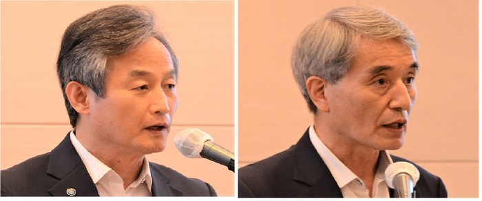 | ▲안병옥 한국환경공단 이사장(왼쪽), 허재영 국가물관리위원장이 인사말과 축사를 하고 있다. |