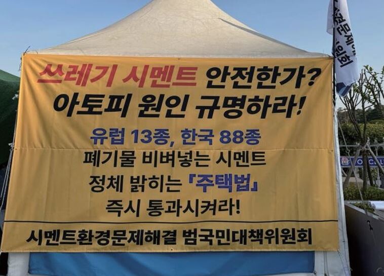 국회는 현재 '시멘트성분 표시제'는 시행됐고 이어서 '주택법'을 일부개정안을 올려 아파트 시멘트 유해성을 알리겠다는 취지로 상정된 상태다. [환경데일리 = 김영민 기자]