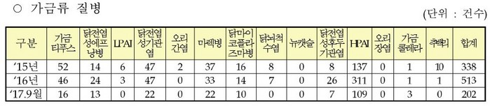 지난해 11월 이후 발생한 조류인플루엔자(AI) 발병으로 전남 영광, 고흥, 전북 군산, 경기 포천 등 지역을 중심으로 전체 가금류의 0.4%가 긴급 또는 예방적 살처분 됐다.