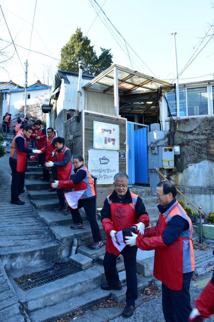 한전 조환익 사장은 연탄배달을 마친 후 독거노인 세대(20가구)를 방문해 생필품(쌀20kg,라면 1box)을 전달하고 위로와 격려의 말을 전했다.