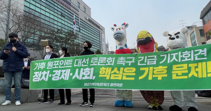 이 자리에서 현재 '공직선거법' 제82조의2(선거방송토론위 주관 대담·토론회)에 근거해 '제20대 대통령선거 후보자 초청 토론회'가 진행될 예정인데, 법정 토론회에서 기후위기를 단일 주제로 한 토론회를 최소 한 번 개최해야 한다고 주장했다.