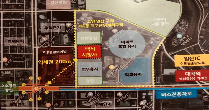 이동환 시장은 취임과 함께, 처음부터 신청사 건립을 염두해두지 않고, 시청 규모에 적합한 백석동 업무빌딩을 이미 지어진 신축건물이라는 점과 교통요충지로 일산선, 3호선 백석역과 경의중앙선 대곡역, 소사선, 제1수도권고속도로 일산IC 진출입 등 지금 청사의 주변 입지 조건에 비해 월등하다고 낙점 배경을 설명했다.