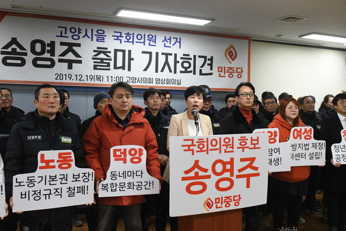 [환경데일리 김영민 기자]민중당 송영주 전 경기도의원이 21대 국회의원 선거 고양시을 선거구에 출마를 공식 선언했다.