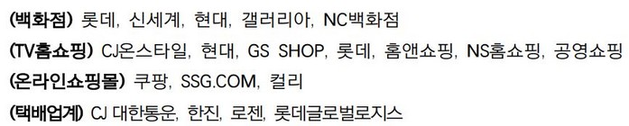 백화점, 홈쇼핑, 온라인쇼핑몰, 대형택배사