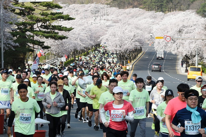 풀코스와 더불어 하프코스, 10㎞와 5㎞ 단축코스, 건강걷기 코스로 나눠 전문 마라토너뿐만 아니라 가족과 함께 출전하거나 동료와 친구 등 기량이 다른 참가자들이 벚꽃나무 아래를 달리며 천년고도 경주의 봄을 만끽했다.