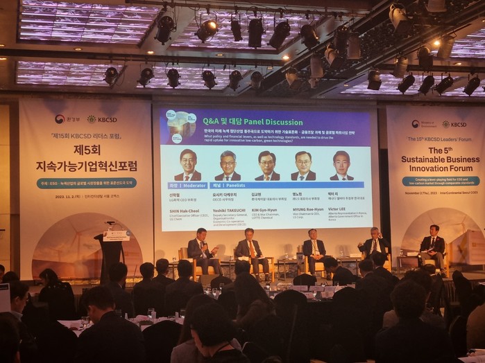 환경부(장관 한화진)와 KBCSD 한국지속가능발전기업협의회(회장 이경호)는 2일 오후 인터컨티넨탈서울코엑스(서울 강남구 소재)에서 '제5회 지속가능기업혁신 토론회(포럼)'을 공동으로 개최했다.