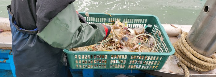 현장에서 조업중인 어선에 올라 그물을 끌어올려서 본 폐비닐류 1회용 플라스틱류는 80% 이상 건져 올릴 정도였다.