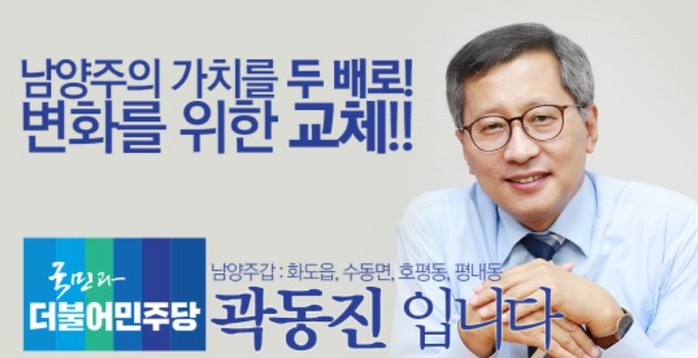 곽동진 예비후보는 17일, "남양주의 가치를 두배로! 슬로건처럼 남양주 주민의 삶의 질과 도시환경을 향상시키고 3기 민주정부인 문재인 정부의 개혁성공을 위해 뛰겠다."고 포부를 밝혔다.