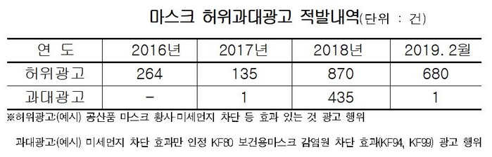 [환경데일리 김영민 기자]고농도 미세먼지 공습에 편승해 소비자를 현혹하는 마스크 허위과대광고 적발이 급증한 것으로 나타났다.