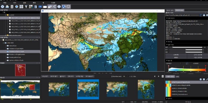 ▲정지궤도 환경위성에서 관측한 중국발 미세먼지 |