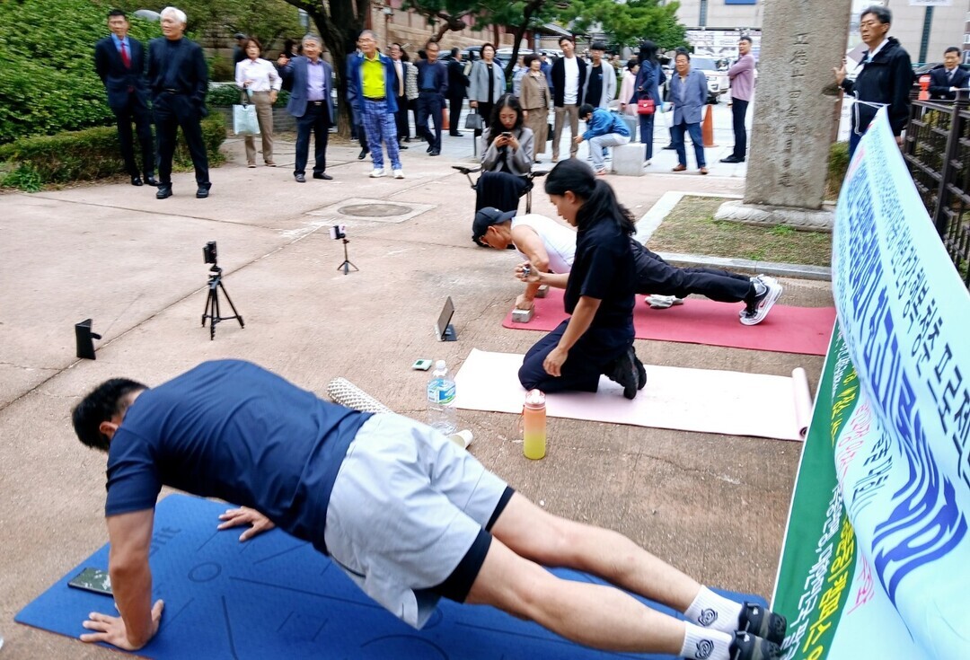 대한민국 독립 영웅 안중근 의사를 기리는 팔굽혀펴기 대회를 연다.