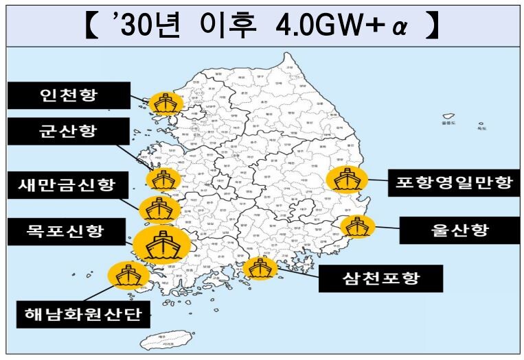 현재 실질적으로 해상풍력을 지원할 수 있는 항만은 목포신항 1곳에 그쳤으나, 기존 항만 기능 조정과 신규 지원부두 개발을 병행, 2030년까지 연간 4GW 처리 가능한 항만 체계를 구축한다.